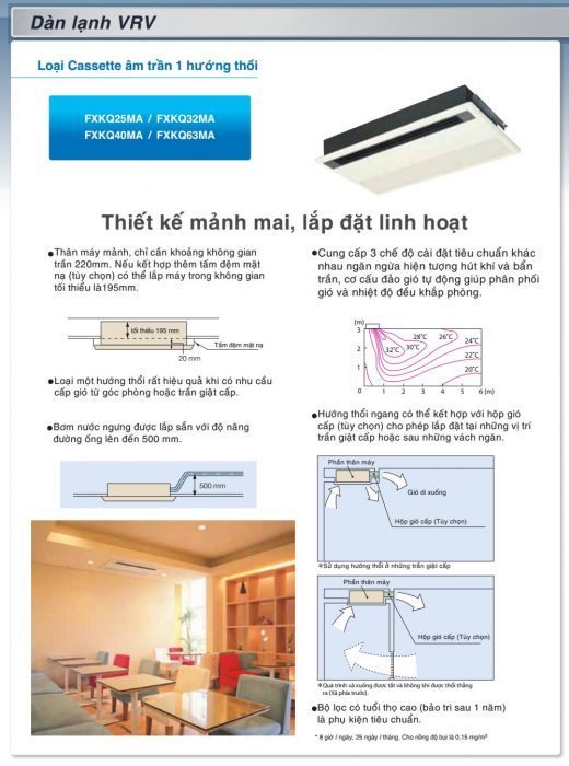 Tính năng chính của dàn lạnh vrv daikin cassette âm trần (1 hướng thổi):