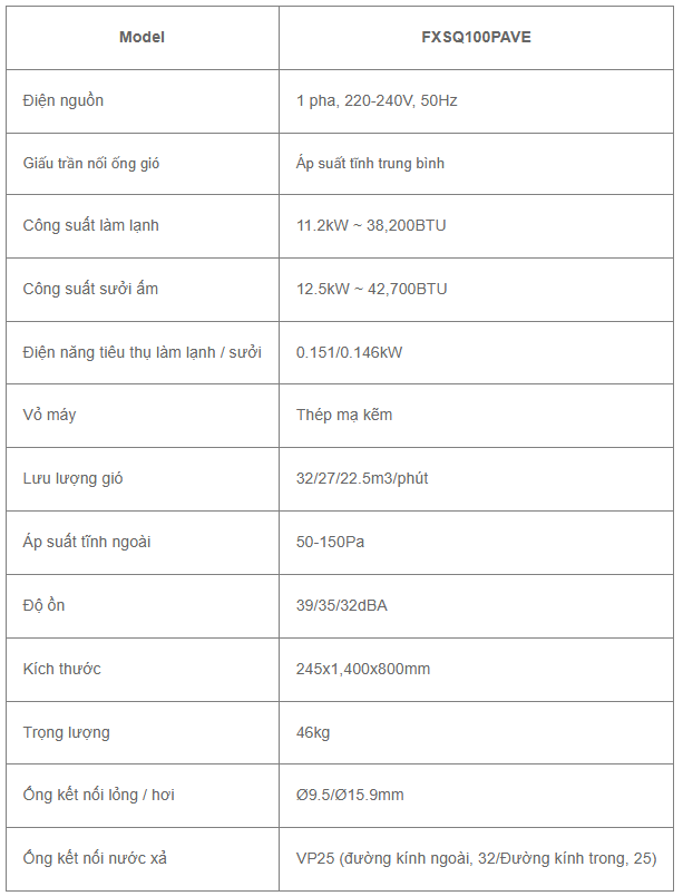 1. Dàn lạnh Điều hoà nối ống gió Daikin FXSQ100PAVE