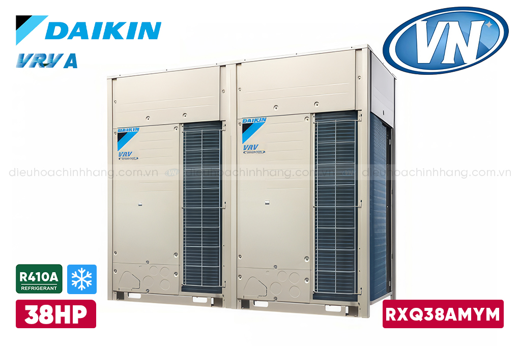 Điều Hòa Trung Tâm Daikin 1 Chiều 38HP RXQ38AMYM loại tiêu chuẩn 2 chiều là dàn nóng đôi, sử dụng gas R410 là hệ thống điều hòa trung tâm dành cho các tòa nhà thương mại, ứng dụng công nghệ điều chỉnh lưu lượng môi chất lạnh biến đổi được phát triển bởi Daikin nhằm mang lại cho khách hàng khả năng điều khiển nhiệt độ ở từng khu vực riêng biệt trong mỗi phòng hoặc mỗi tầng trong tòa nhà.